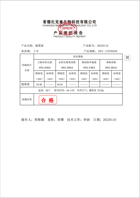 110705026 比克曼生物 鏈霉素 10UG 20片瓶 20220110