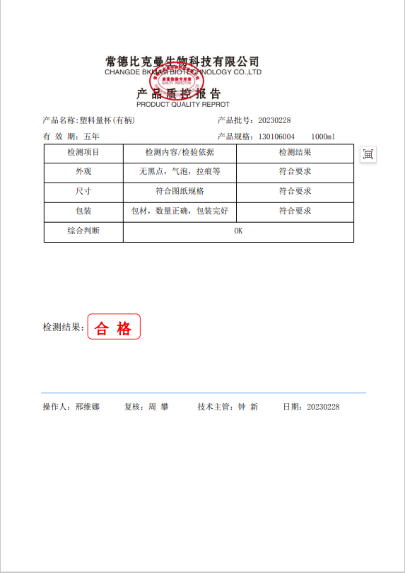 130106004 BKMAM 塑料量杯(有柄) 1000ml 20230228