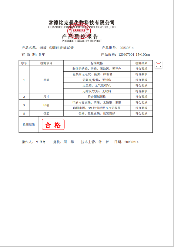 120307004 湘玻 高硼硅玻璃試管 15x100mm 20230214