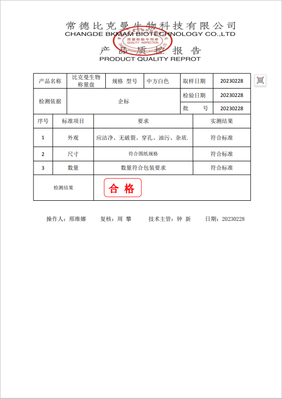 110406007 比克曼生物 塑料稱量盤(中方白色) 250只袋 20230228