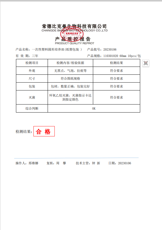 110301020 bkmamlab 一次性圓形塑料培養(yǎng)皿 (紙塑包裝) 60mm 10個袋 20230106