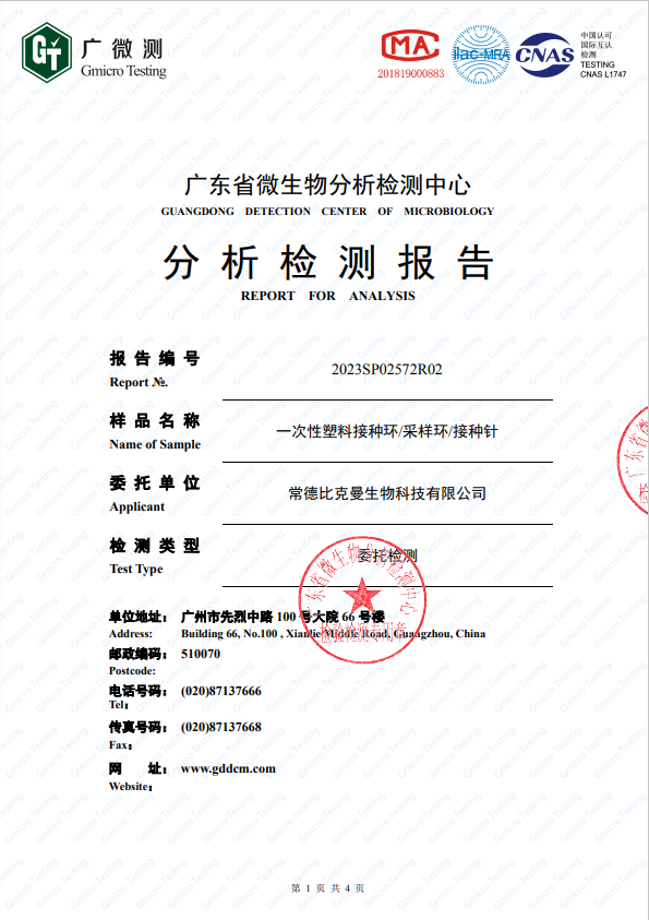 第三方報(bào)告 2023SP02572R02-一次性塑料接種環(huán)采樣環(huán)接種針20230310
