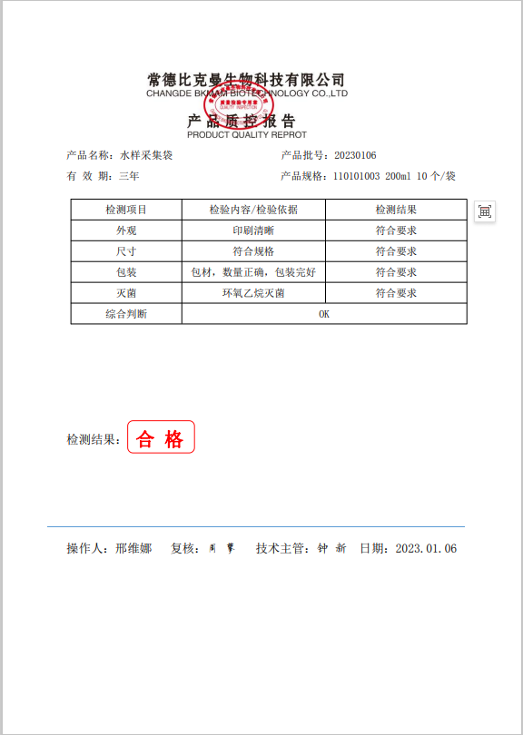 110101003 bkmamlab 水樣采集袋 200ml 10個(gè)袋 20230106