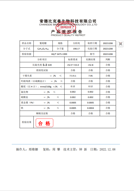 110702040 比克曼生物 葡萄糖 AR分析純 250g瓶 20221208