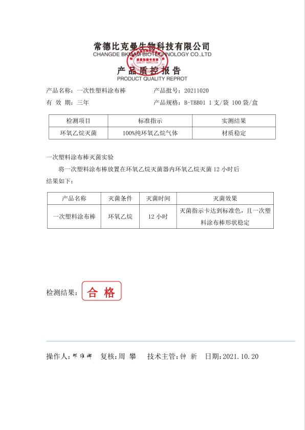 一次性塑料涂布棒 1支袋 100袋盒 B-TBB01 20211020