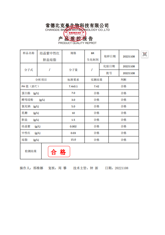 110701021 比克曼生物 結(jié)晶紫中性紅膽鹽瓊脂 BR 250g 20221108