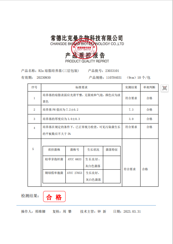 110704031 比克曼生物 R2a瓊脂培養(yǎng)基(三層包裝) 9cm 10個袋 23033101