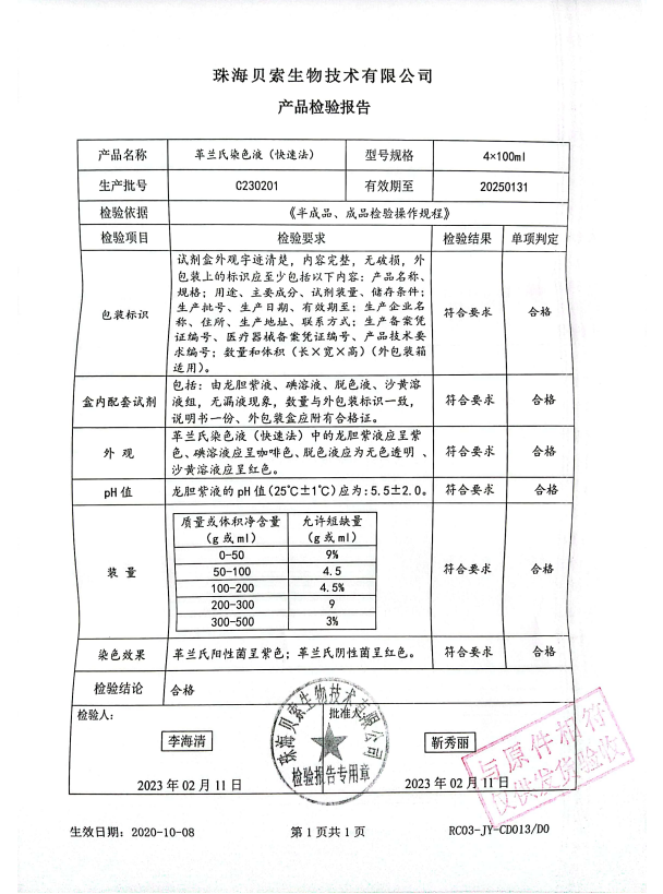 貝索 革蘭氏染色液(快速法) 100ml4盒 C230201
