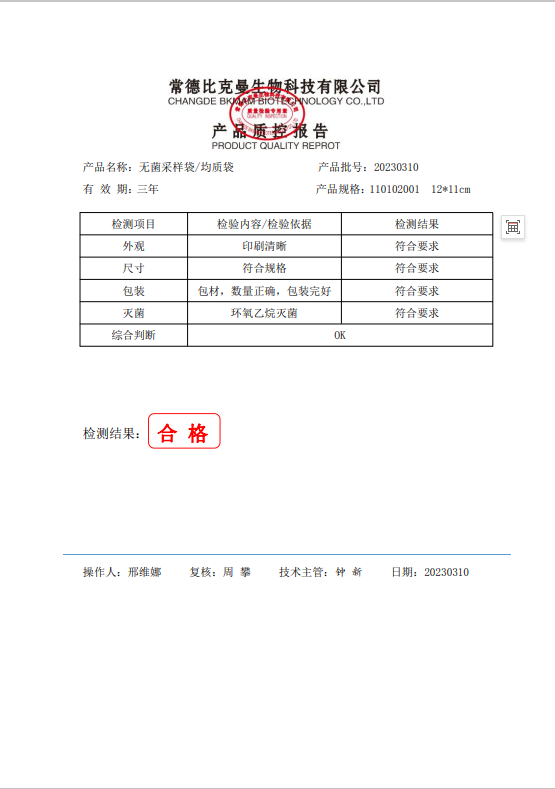 110102001 比克曼生物 無菌采樣袋 12x11 (帶壓條) 100個裝 20230310