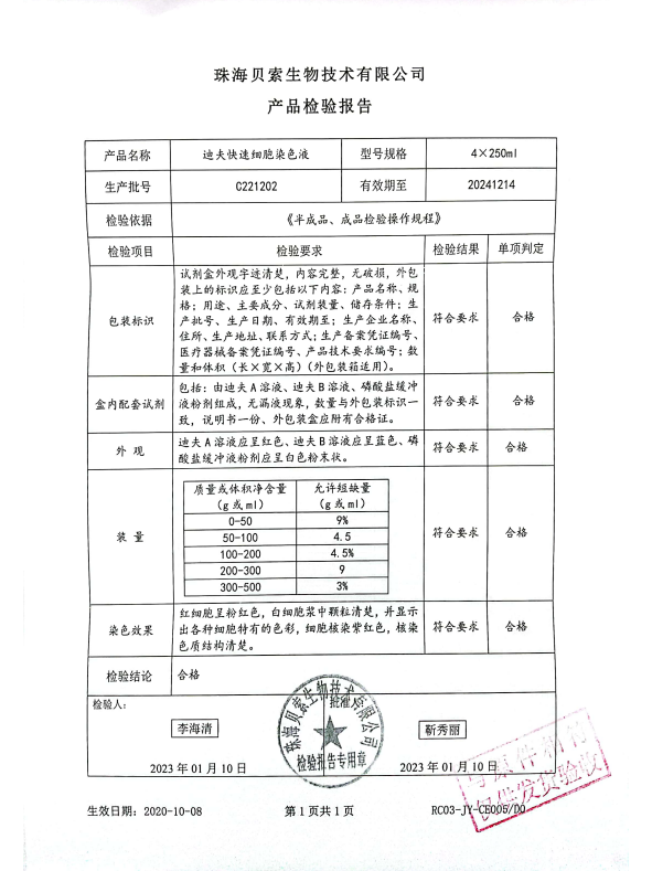 貝索 迪夫快速細(xì)胞染色液 250mlx4 BA4100 C221202
