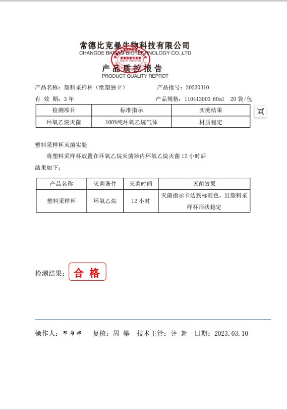 110413003 比克曼生物 采樣杯 (紙塑獨(dú)立) 60ml 1個袋 20袋包 20230310