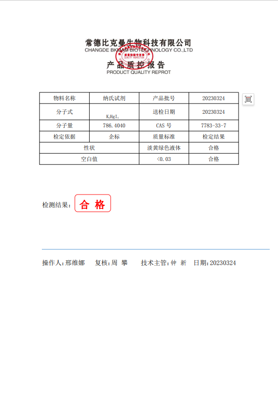 110702070 比克曼生物 納氏試劑 100ml 瓶 20230324
