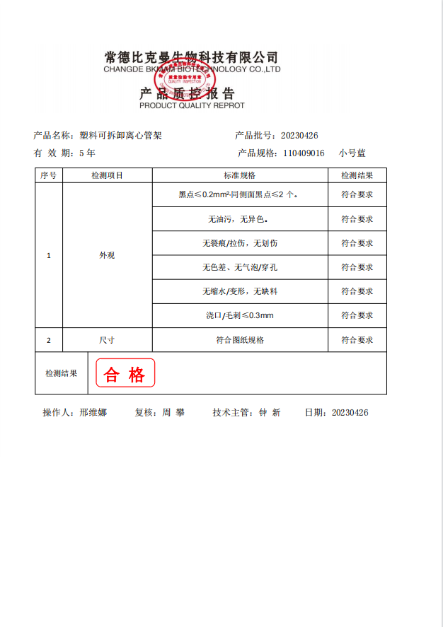 110409016 bkmamlab 塑料可拆卸離心管架 小號藍(lán) 100個箱 20230426