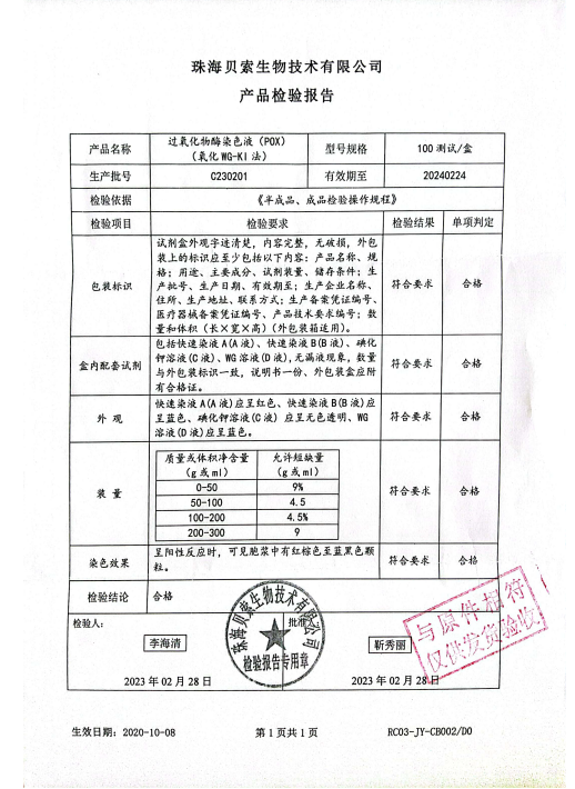 過(guò)氧化物酶染色液(POX)(氧化 WG-KI法) 100測(cè)試盒 BA4110B C230201
