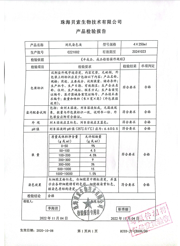 貝索 劉氏染色液 4x250ml BA4000 C221002