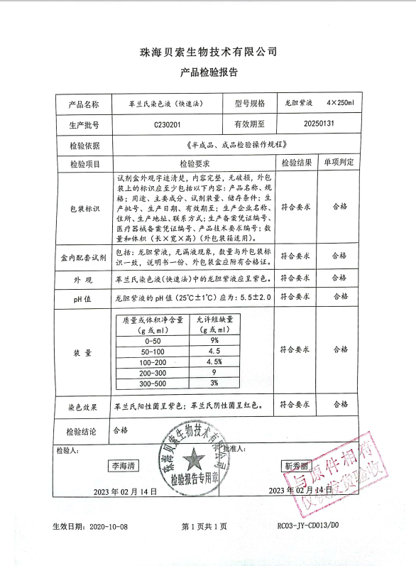 貝索 革蘭氏染色液(快速法) 龍膽紫液 4x250ml BA-4016A C230201