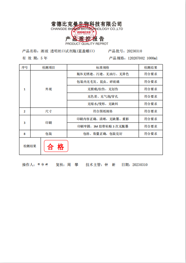 120207002 湘玻 透明絲口試劑瓶(藍(lán)蓋螺口) 1000ml 6個盒 2023010