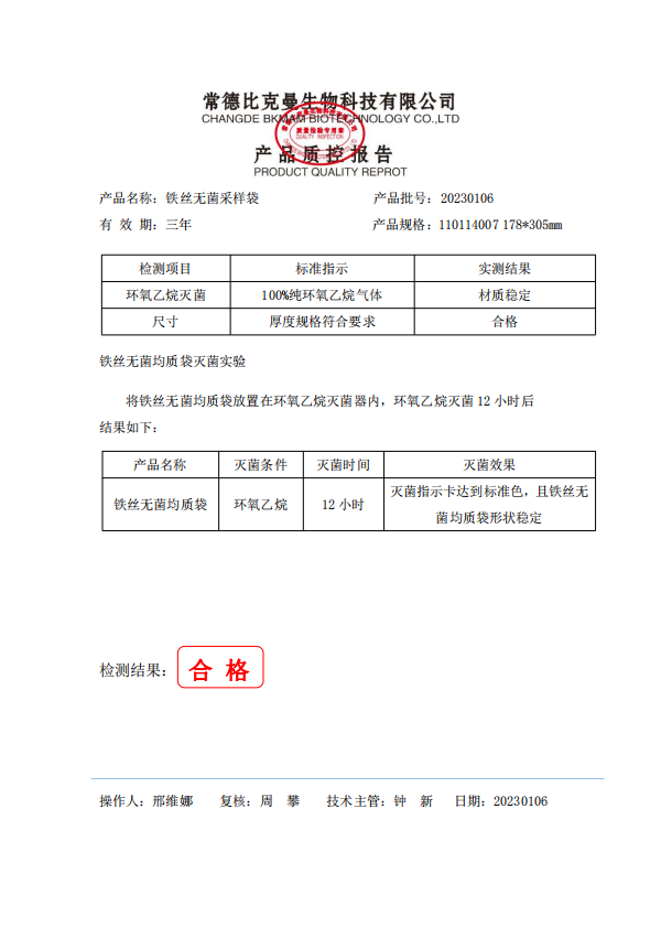 110114007 比克曼生物 鐵絲無菌采樣袋 178x305 (帶書寫區(qū)域) 100個裝 20230106