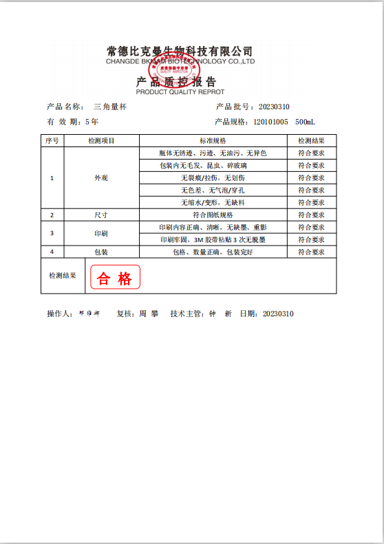 120101002 湘玻 三角量杯 500ml(玻璃) 1個盒 20230310