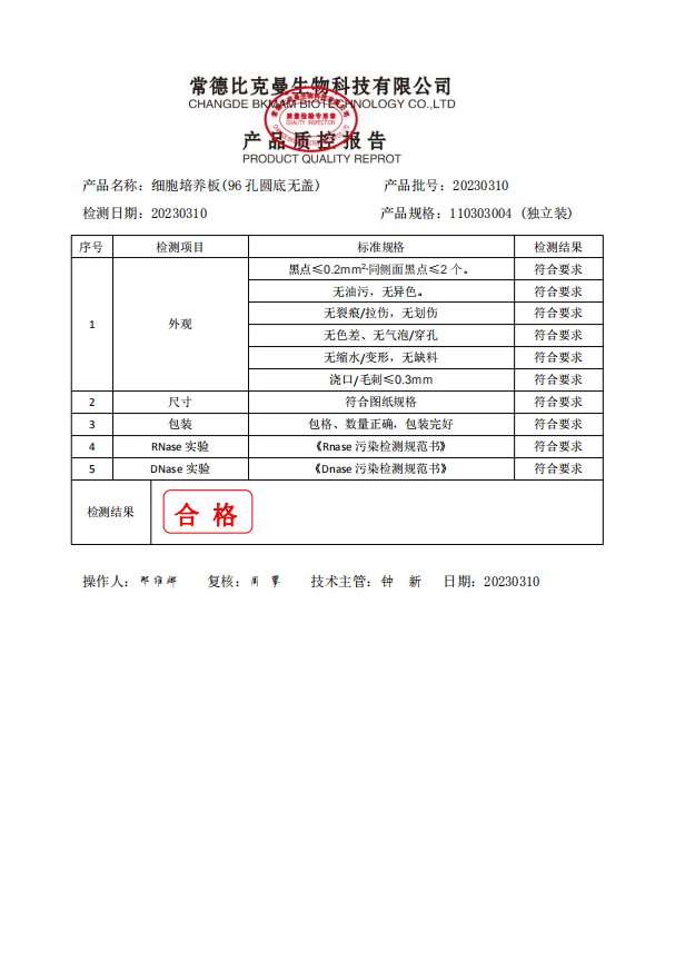 110303004 bkmamlab 細(xì)胞培養(yǎng)板(96孔圓底無蓋) (獨(dú)立裝) 20230310