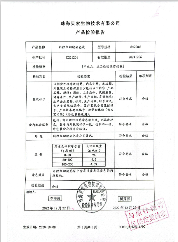 貝索 網(wǎng)織紅細(xì)胞染色液 6x20ml BA4004 C221201
