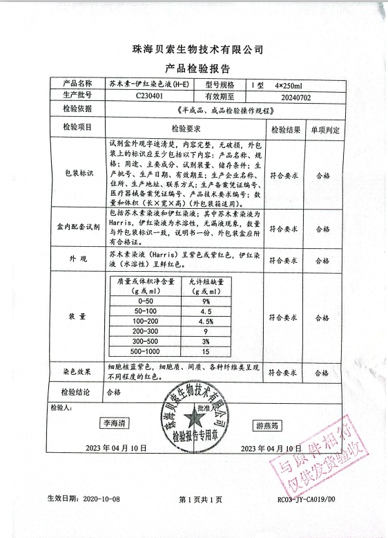 貝索 蘇木素染色液(HE) I型 4x250ml C230401