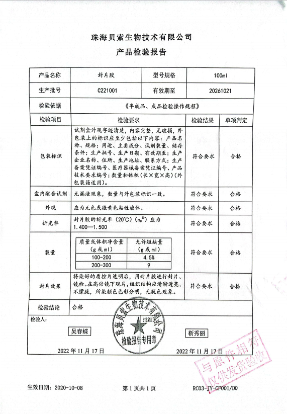 貝索 封片膠 100ml BA7004 C221001