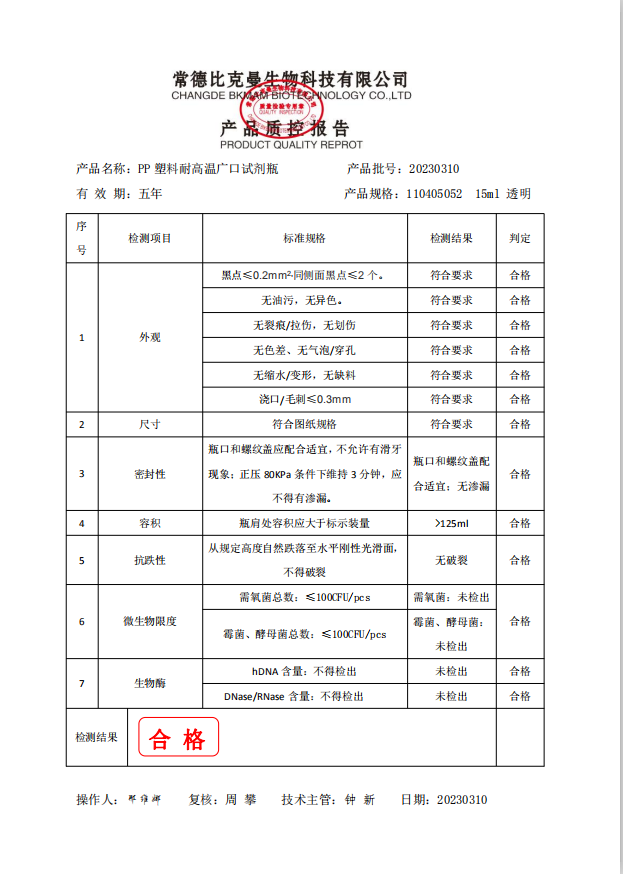 110405052 bkmamlab pp塑料耐高溫廣口試劑瓶 15ml 透明 200個(gè)袋 20230310