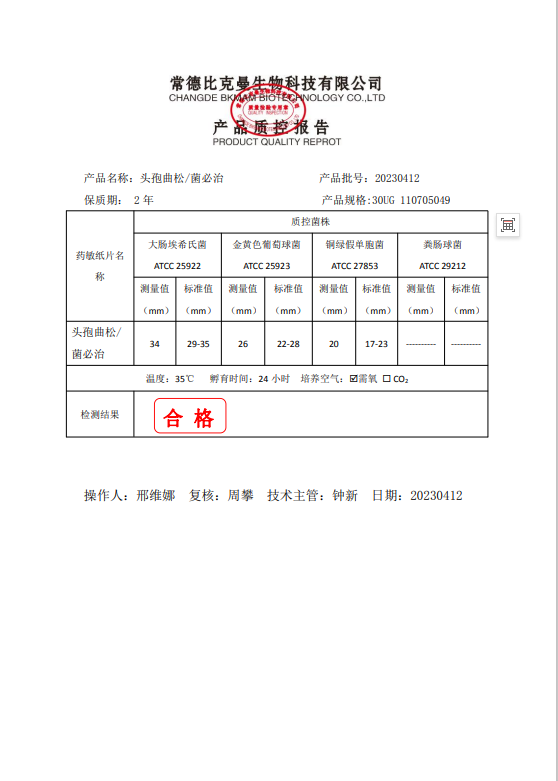 110705049 比克曼生物 頭孢曲松 30UG 20片瓶 20230412