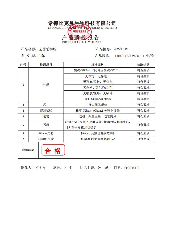 110405060 比克曼生物 無菌采樣瓶 250ml 獨立裝 1個袋 20221012
