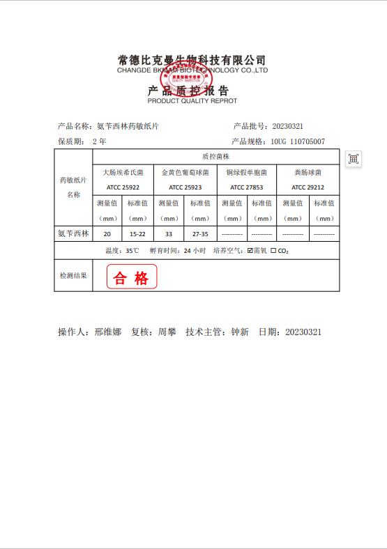 110705007 比克曼生物 氨芐西林 10UG 20片瓶 20230321