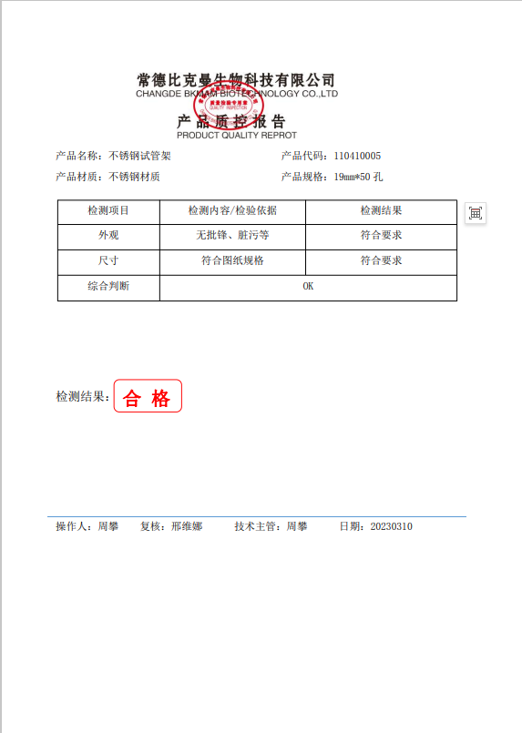 110410005 bkmamlab 不銹鋼試管架(帶LOGO) 19mmx50孔 20230310