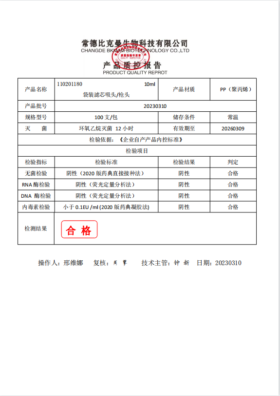 110201180 bkmamlab 袋裝濾芯吸頭槍頭 10ml 100支袋 20230310