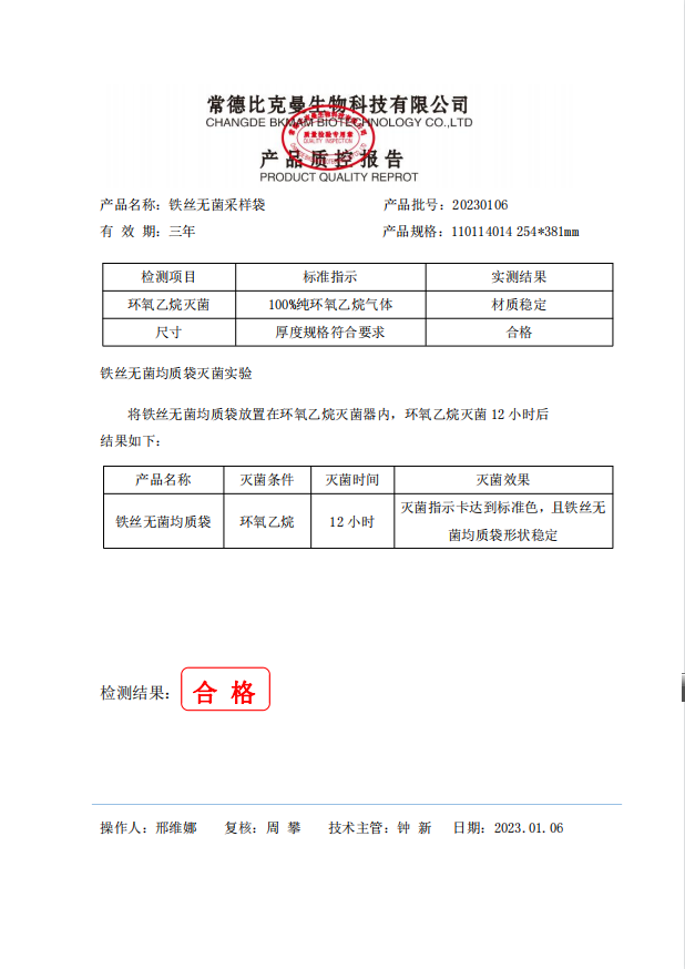 110114014 比克曼生物 鐵絲無菌采樣袋 254x381(帶書寫區(qū)域) 50個裝 20230106