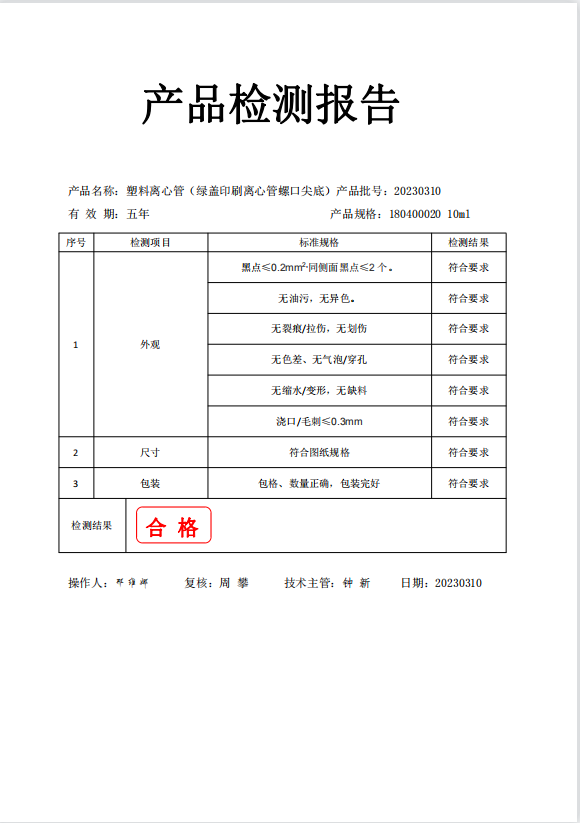 180400020 10mL綠蓋印刷離心管螺口尖底(中性包裝) 50支袋 20230310