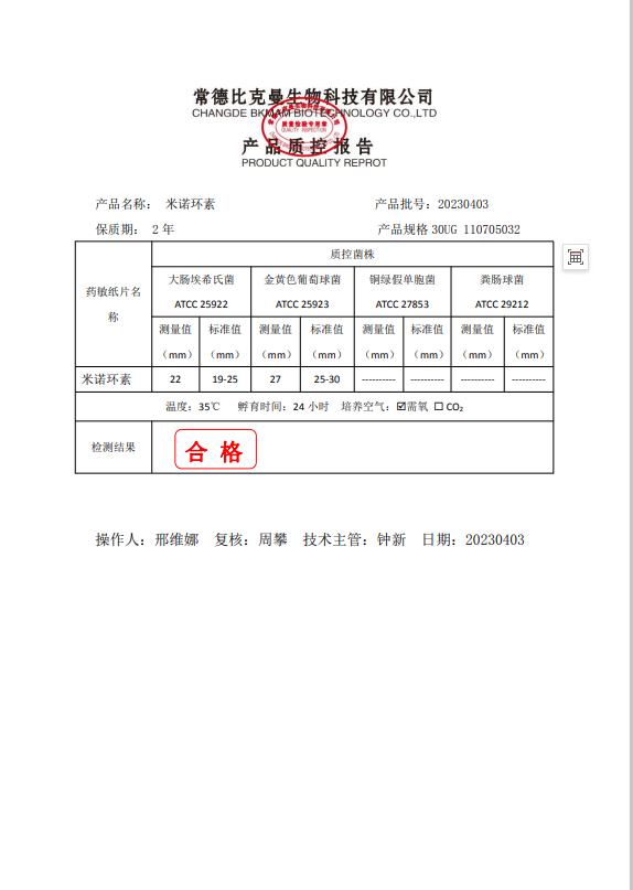 110705032 比克曼生物 米諾環(huán)素 30UG 20片瓶 20230403