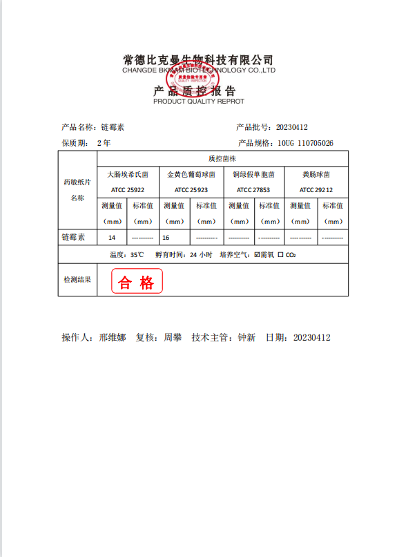 110705026 比克曼生物 鏈霉素 10UG 20片瓶 20230412