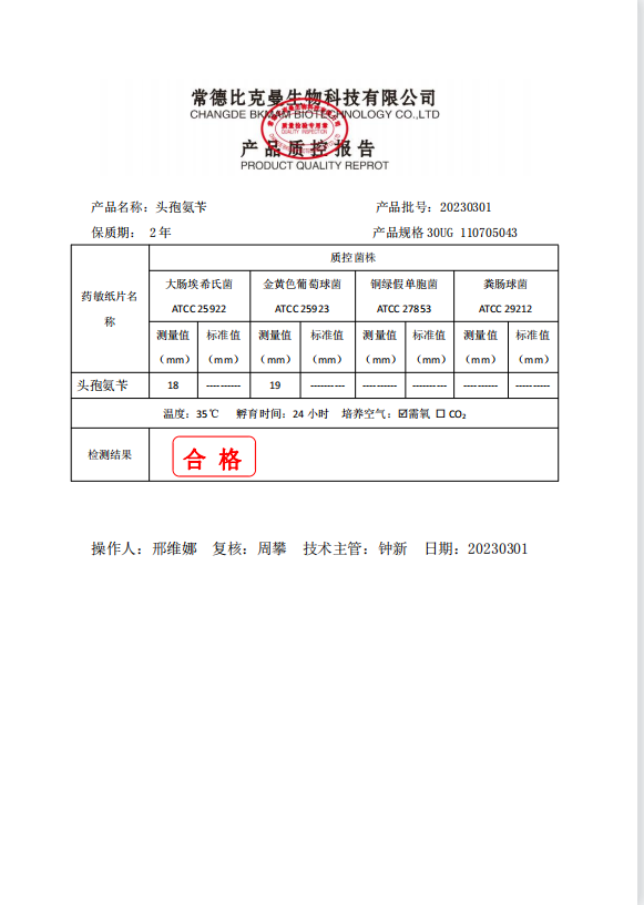 110705043 比克曼生物 頭孢氨芐 30UG 20片瓶 20230301