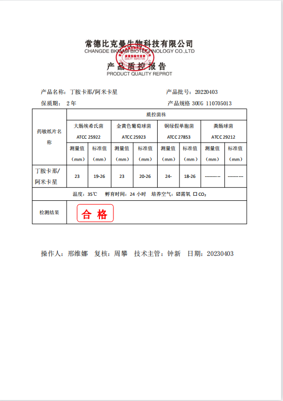 110705013 比克曼生物 阿米卡星 30UG 20片瓶 20230403