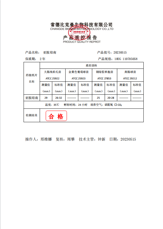 110705058 比克曼生物 亞胺培南 10UG 20片瓶 20230515