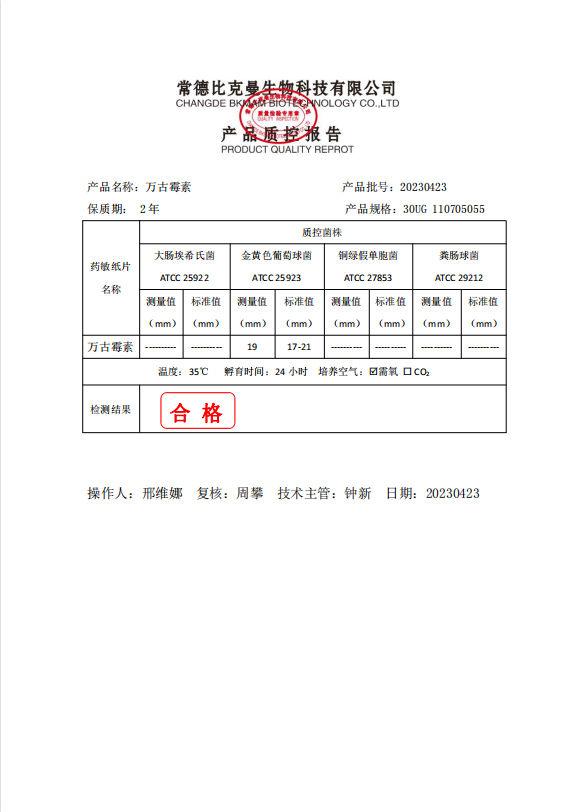 110705055 比克曼生物 萬古霉素 30UG 20片瓶 20230423