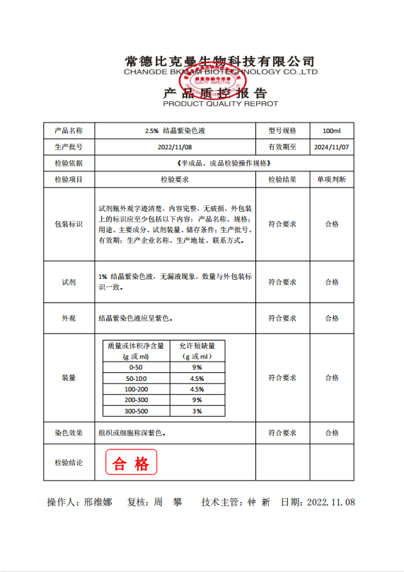 110703016 比克曼生物 結(jié)晶紫染色液 2.5% 100ml 1支裝 20221108