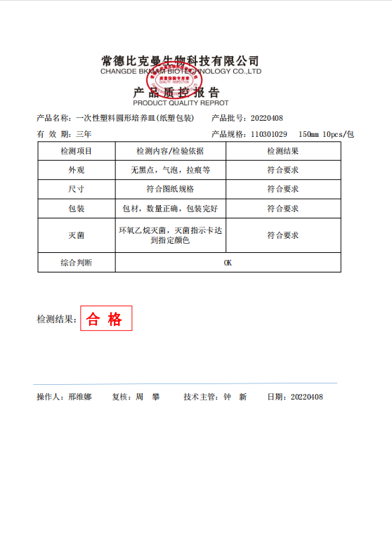 110301029 bkmamlab 一次性圓形塑料培養(yǎng)皿 (紙塑包裝)(加高款) 150mm 10個袋 20220408