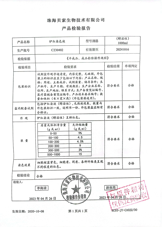 貝索 伊紅染液(醇溶性) 1000ml BA4022 C230402