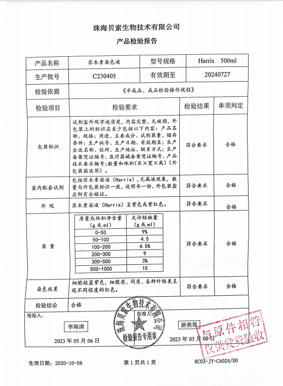貝索 蘇木素染色液 Harris 500ml BA4097 C230405
