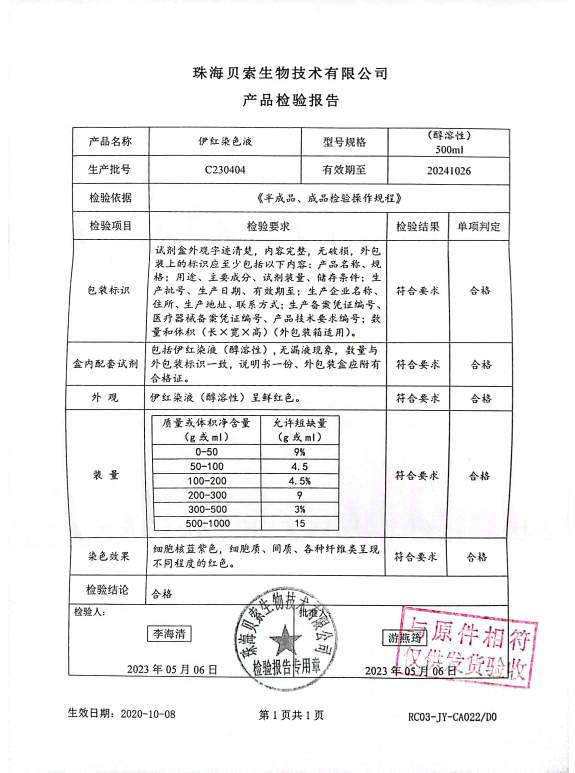 貝索 伊紅染液(醇溶性) 500ml BA4099 C230404