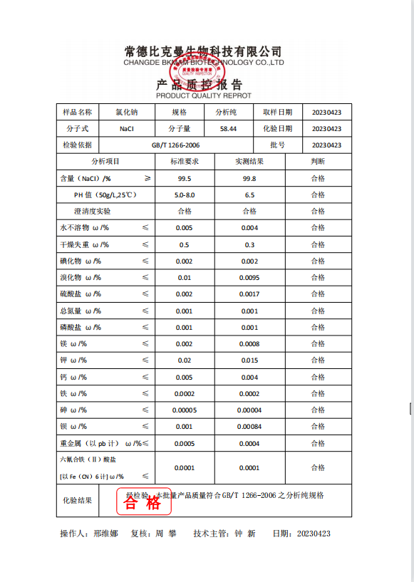 110702034 比克曼生物 氯化鈉 AR 分析純 500g瓶 20230423