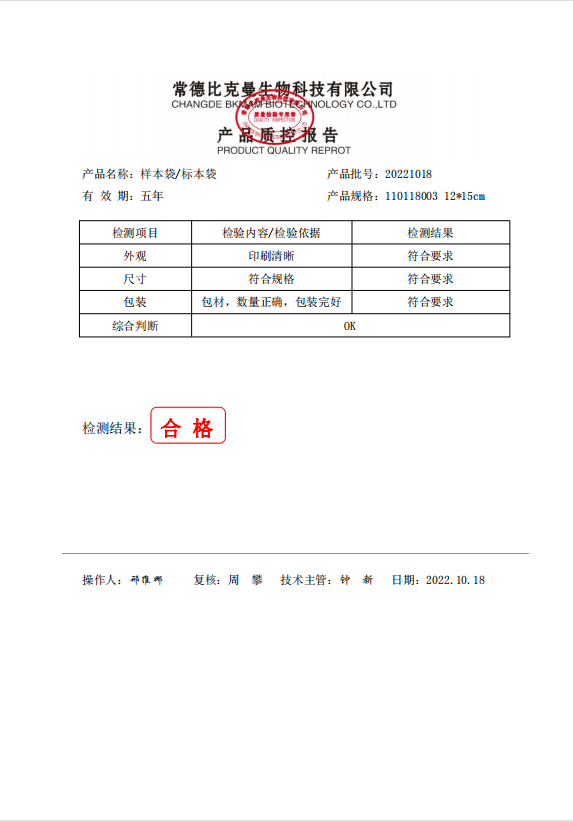 110118003 比克曼生物 樣本袋 12x15cm 100個 袋 20221018