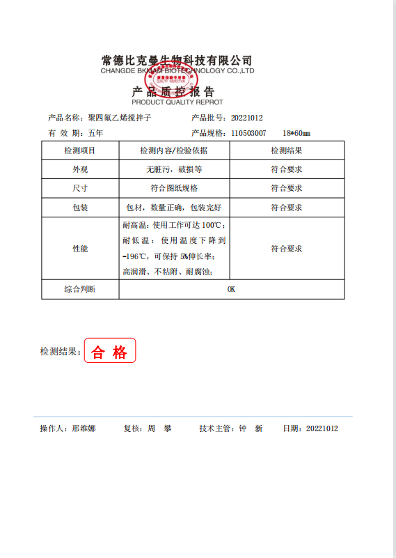 110503007 bkmamlab 聚四氟乙烯攪拌子 A型 18x60mm 20221012