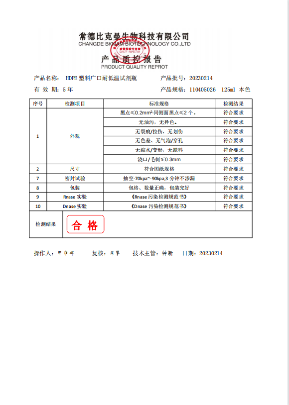 110405026 bkmamlab HDPE 塑料廣口耐低溫試劑瓶 125ml 本色 50個(gè)袋 20230214